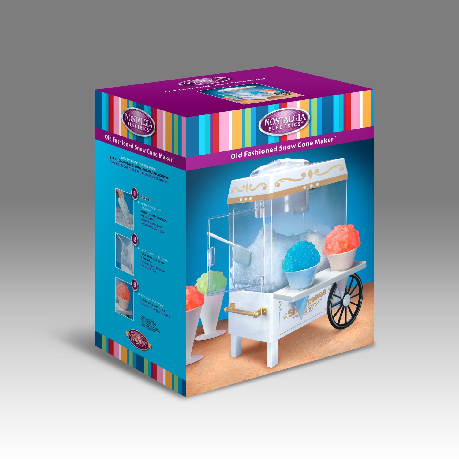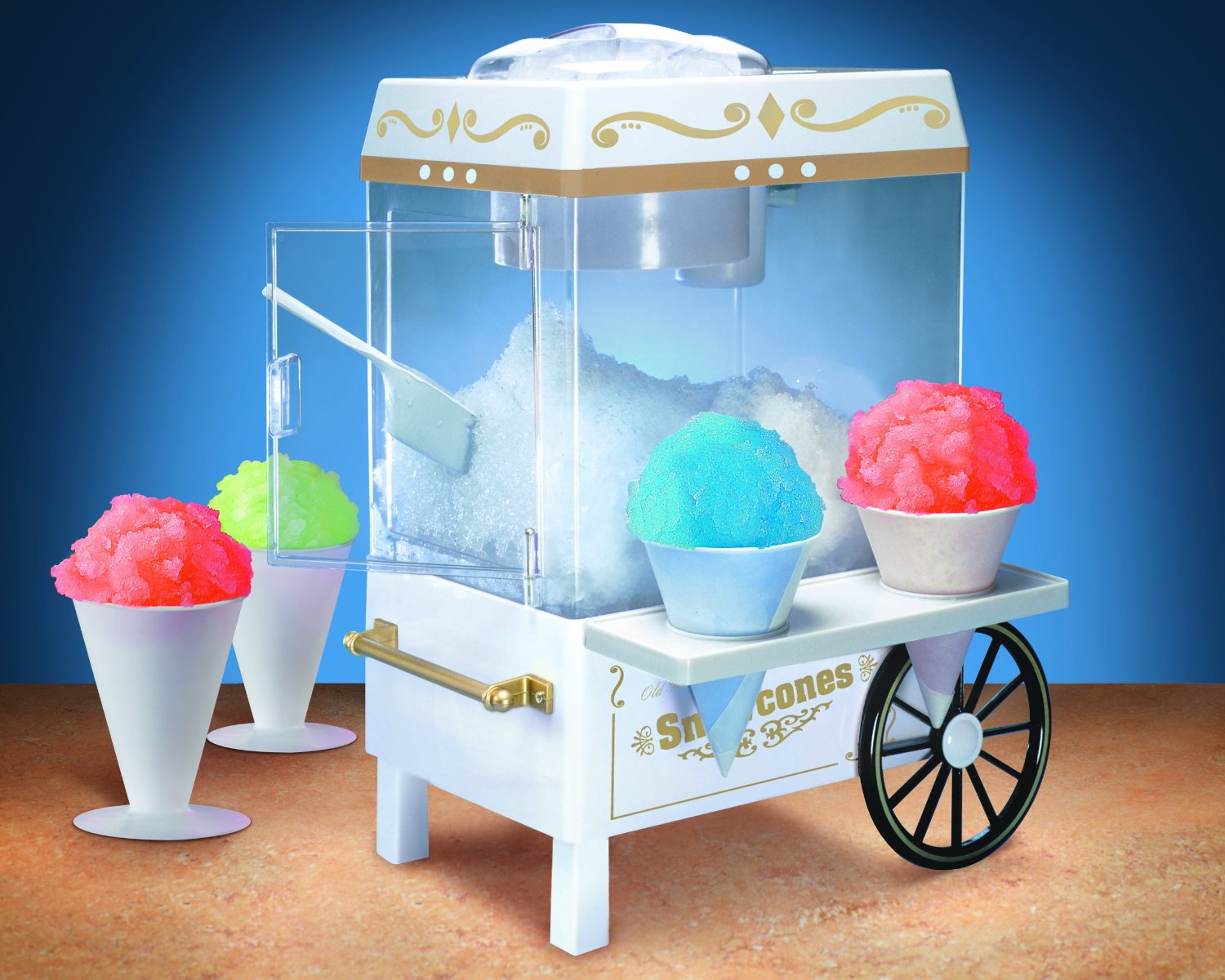 Đá bào tuyết siro hay thêm trái cây tươi là món giải khát thông dụng và được mọi trẻ em trên toàn thế giới yêu thích, còn gì tuyệt hơn khi những ly kem đá bào được làm ngay trong gian bếp của gia đình bạn với máy bào đá tuyết kiểu dáng vintage Nostalgia Electrics SCM502, chỉ cần vài phút với nguyên liệu trong tủ lạnh, những thiên thần nhỏ sẽ thích thú tận hưởng những ly kem đầy màu sắc.