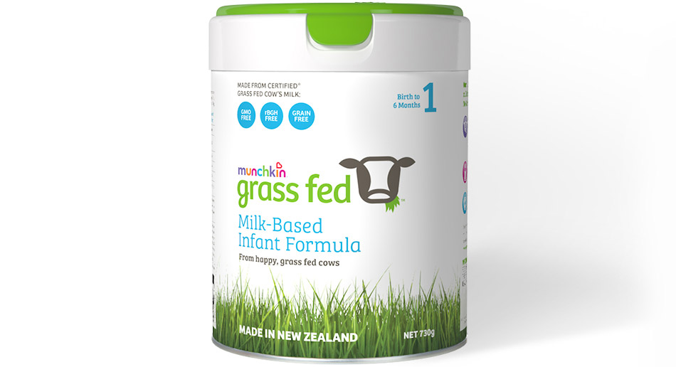 Nguồn thức ăn cho bò có hàm lượng Vitamin A&E cao, có sự cần bằng giữa Omega3&6. Và được cung cấp suốt 365 ngày trong 1 năm. Bột Munchkin Grass Fed dành cho trẻ sơ sinh có chứa DHA và ARA miễn phí để hỗ trợ phát triển não bộ. Ngoài ra cũng chứa Lactoferrin, một chất tăng cường miễn dịch xuất hiện tự nhiên trong sữa mẹ. Trong khi các công thức khác có chứa chất rắn xi-rô ngô hoặc đường mía, cỏ Fed chỉ chứa lactose, carbohydrate có trong sữa mẹ.