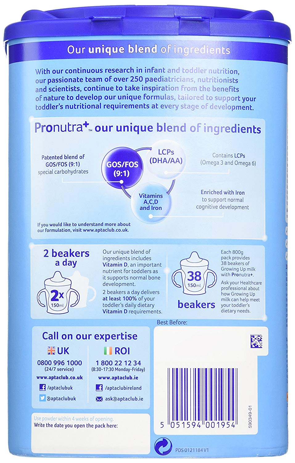 - Sữa Aptamil Anh số 2 900g cho trẻ từ 6 đến 12 tháng có chứa LCPs (hỗn hợp DHA/AA và các Omega 3, 6) rất cần thiết cho sự phát triển trí não và thị giác của bé, tạo tiền đề cho sự phát triển về nhận thức, các giác quan của bé ngay từ giai đoạn đầu đời