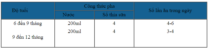 - Tùy vào độ tuổi của bé để pha lượng sữa cho phù hợp, bạn có thể cho bé ăn bao nhiêu lần trong ngày cũng được tùy vào sức ăn của bé.