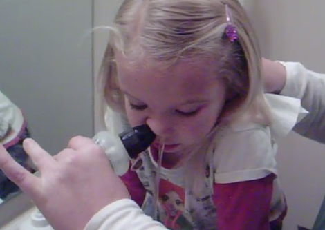 - Bước 4: Nhỏ nước muối vào 2 bên cánh mũi để nước chảy từ bên cánh này sang cánh kia. Thao tác này cần thực hiện cẩn thận vì dễ sặc làm tổn thương bên trong mũi.