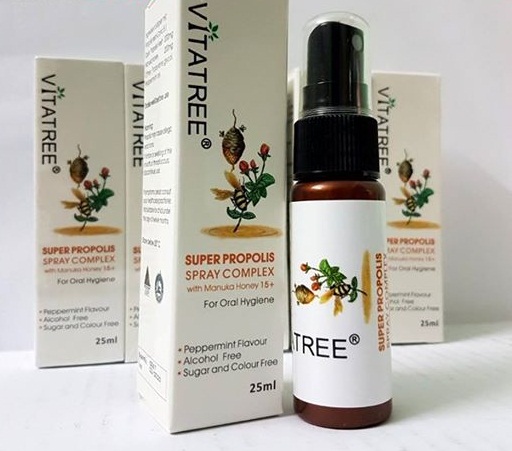 - Có thể xịt trực tiếp xịt keo Ong Vitatree Super Propolis With Manuka Honey vào miệng và cổ họng.