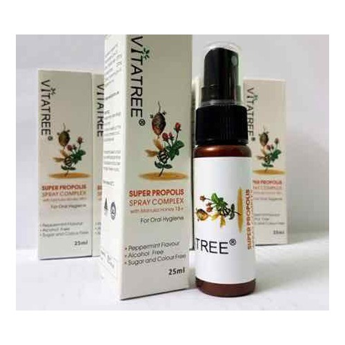 Keo Ong là một hỗn hợp keo nhựa mà các con ong mật thu thập từ chồi cây, nhựa cây, nhựa hoa... của những loài thực vật khác nhau. Tất cả được hòa trộn với chất dịch do ong tiết ra tạo thành keo ong. Xịt keo ong Vitatree Super Propolis With Manuka Honey của Úc giúp chống lại sự phát triển của nấm và sự nhiễm trùng từ bên ngoài giúp giảm các triệu chứng liên quan đến đường hô hấp, đau họng, ngứa họng, …