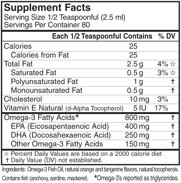Cung cấp 800 mg omega-3 trong mỗi nửa muỗng cà phê, được kiểm định tại phòng thí nghiệm chất lượng FDA Hoa Kỳ.