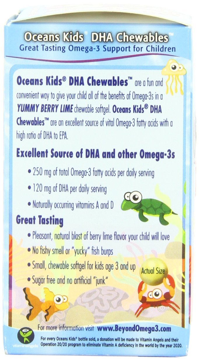 Nếu bạn đang tìm cách bổ sung omega-3, DHA cho các bé bằng dầu gan cá mà không phải ép các bé nhai bởi dầu gan cá vốn có vị khó chịu, thì Kids DHA Chewables là giải pháp thuận tiện và vui vẻ nhất khi tất cả dưỡng chất được tích hợp vào viên nhai vui nhộn mang màu sắc đại dương này.