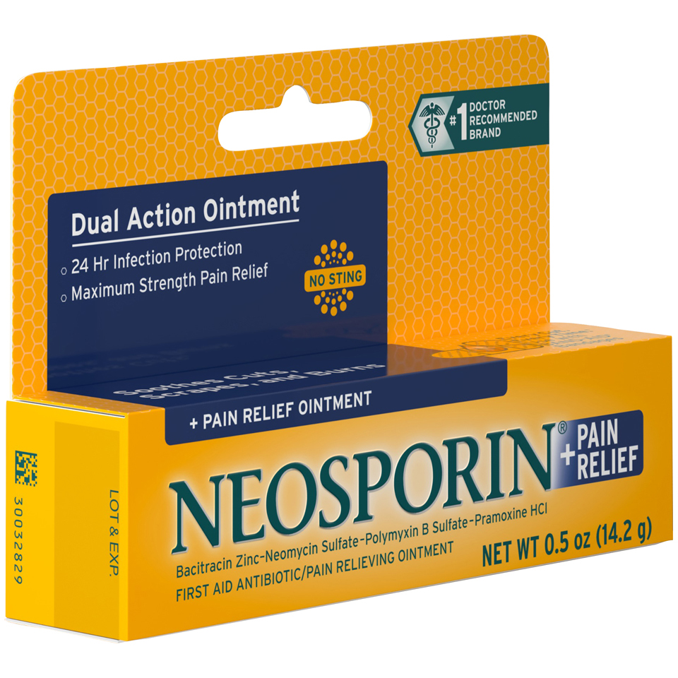 Kem Mỡ Điều Trị Vết Thương/Bỏng Neosporin được nhập khẩu từ Mỹ.Giúp ngăn ngừa nhiễm trùng và cung cấp giảm đau tối đa sức mạnh từ vết cắt nhỏ, vết trầy xước và bỏng. Bảo vệ nhiễm trùng mạnh mẽ + Giảm đau.