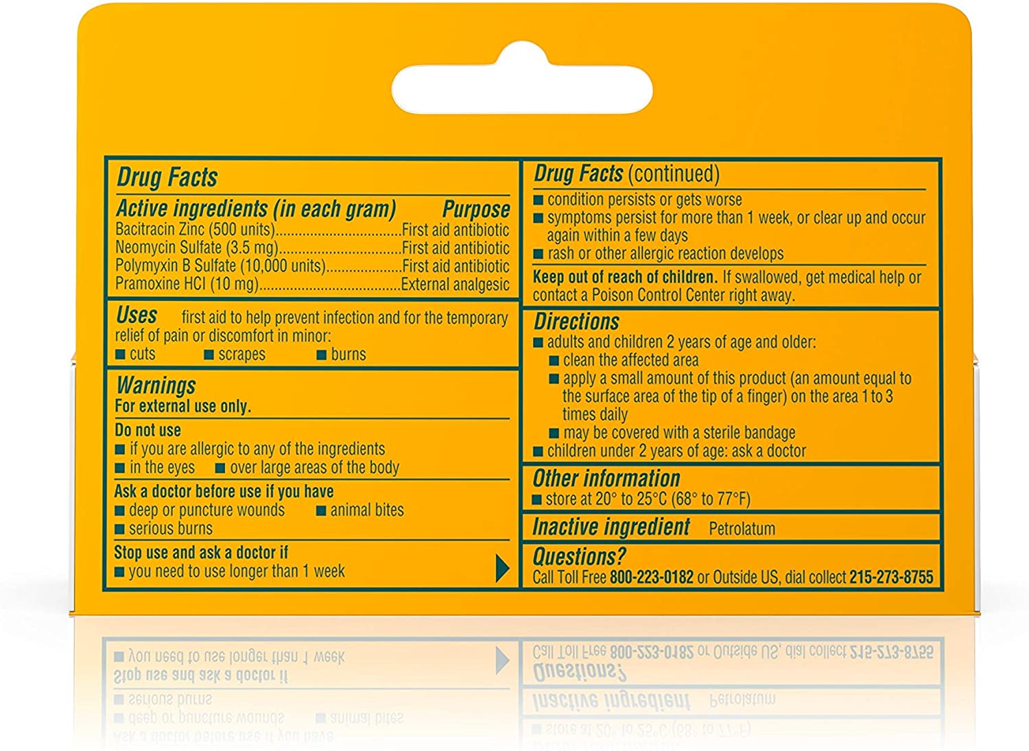 Bacitracin (500 đv), Neomycin (3,5 mg), Polymyxin B (10.000 đv), Pramoxine HCl (10 mg). Thành phần không hoạt động: White Petrolatum.