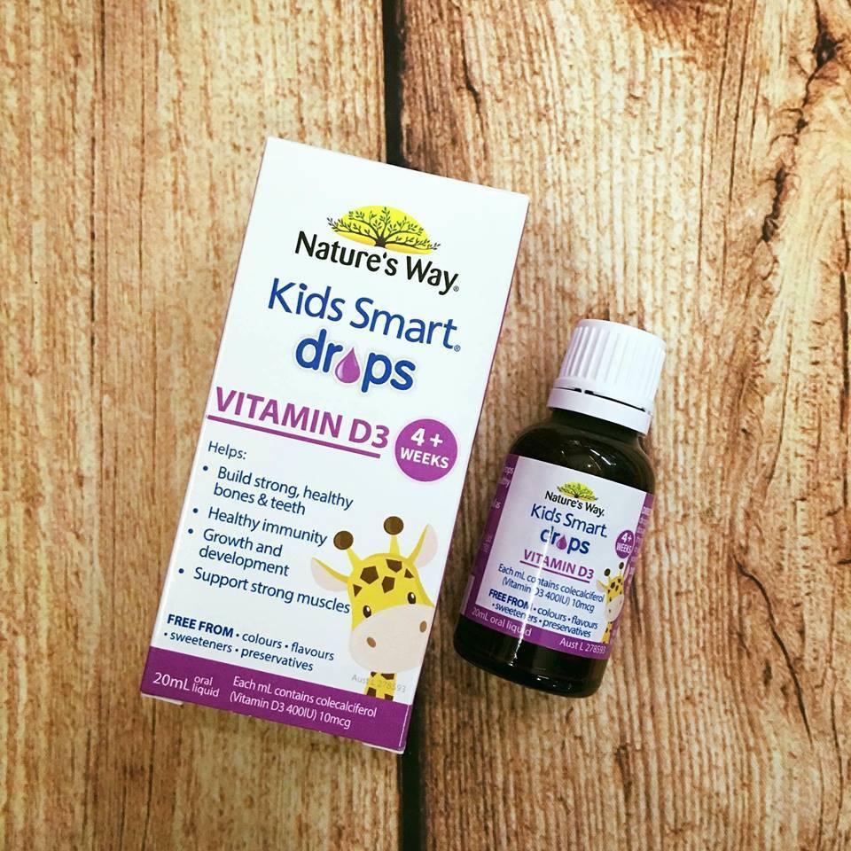 Ngày nay việc thiếu hụt vitamin D ở trẻ trở nên rất phổ biến dẫn đến phá huỷ sự trao đổi canxi và phốt pho, dẫn tới bệnh còi xương – biến dạng xương do sự rối loạn các quá trình khoáng hoá các chất của trẻ. Nhưng ở Việt Nam các bậc phụ huynh ít có thói quen cho trẻ tắm nắng hàng ngày để bổ sung Vitamin D chính vì thế chúng ta nên bổ sung cho trẻ Nature’s Way Kids Smart Drops Vitamin D3 20ML – Bổ Sung Vitamin D Cho Bé cung cấp hàm lượng vitamin D không tự tổng hợp được ở trẻ, giúp xương, răng phát triển khỏe mạnh và tăng cường hệ thống miễn dịch ở cơ thể bé.
