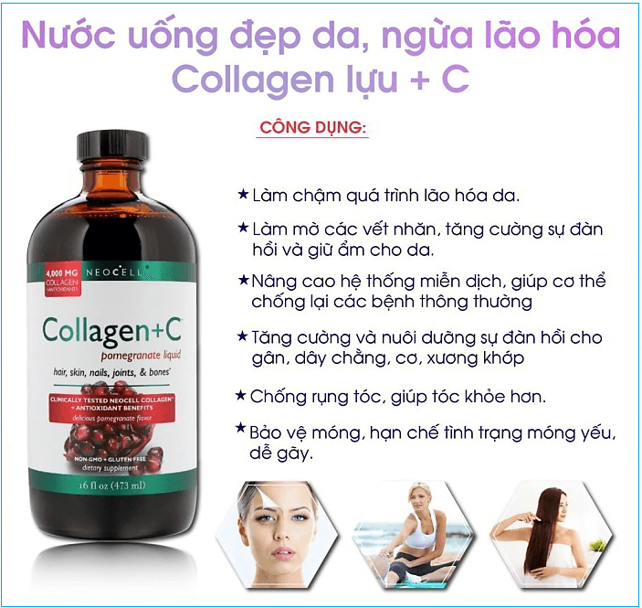 Chính vì vậy, sản phẩm Neocell Collagen C Pomegranate Liquid như là 1 vị cứu tinh đối với làn da của chị em phụ nữ, đây cũng là sản phẩm làm chậm quá trình oxy hóa của cơ thể.