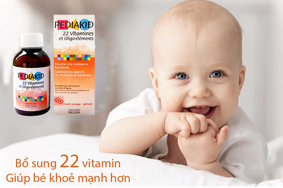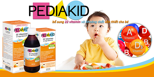 Pediakid 22 Vitamin bổ sung Vitamin tổng hợp cho bé 125ml cung cấp đầy đủ các loại vitamin cần thiết cho trẻ sơ sinh và trẻ nhỏ. Các mẹ khi cho bé uống Pediakid loại này thì không nhất thiết phải uống các loại khác nữa.