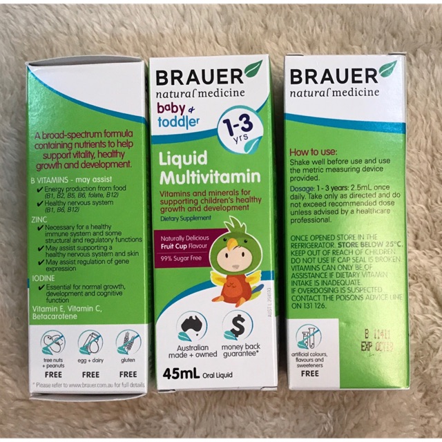 - Siro bổ sung vitamin tổng hợp Brauer Úc dành cho trẻ từ 1 – 3 tuổi cung cấp hầu hết các vitamin và khoáng chất cần thiết (16 vitamin và khoáng chất) hỗ trợ quá trình phát triển toàn diện của trẻ.