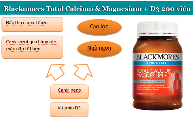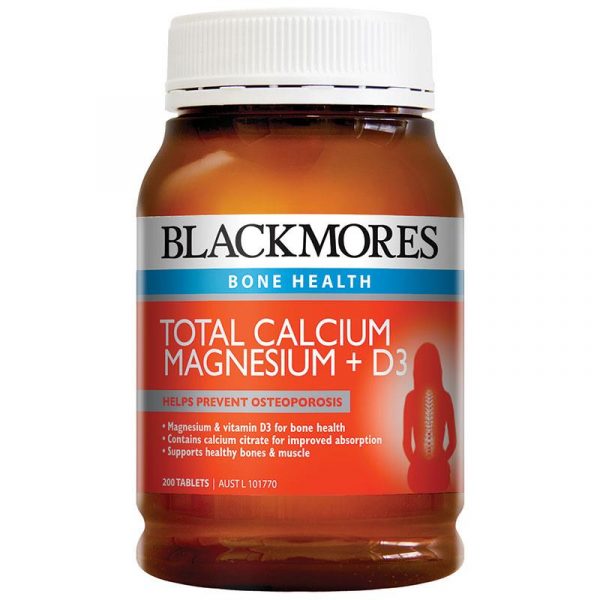 - Blackmores Total Calcium Magnesium + D3 là một sự kết hợp hỗ trợ trong phòng chống và điều trị loãng xương do thiếu canxi một cách tự nhiên. Là nguồn thực phẩm bổ sung trong trường hợp thiếu hụt canxi.