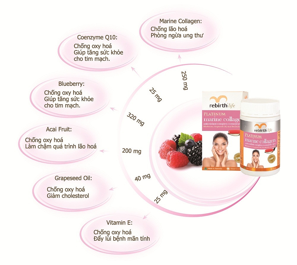 Viên uống chống lão hóa Collagen Platinum Marine Collagen Rebirth Life của Úc- 60 viên