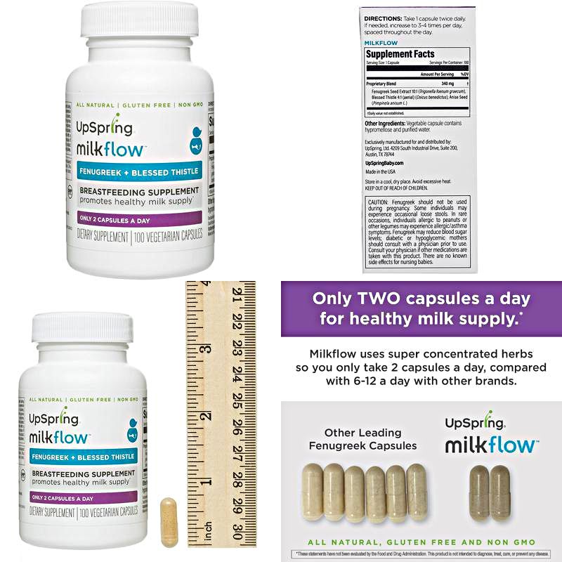 Viên uống lợi sữa Upspring Milkflow Fenugreek + Blessed Thistle Mỹ 100 viên được chiết xuất 100% từ loại cỏ cari có tác dụng kích thích khả năng tiết sữa mẹ. Sản phẩm bán chạy nhất trong tất cả các loại viên uống lợi sữa bán tại thị trường Mỹ.