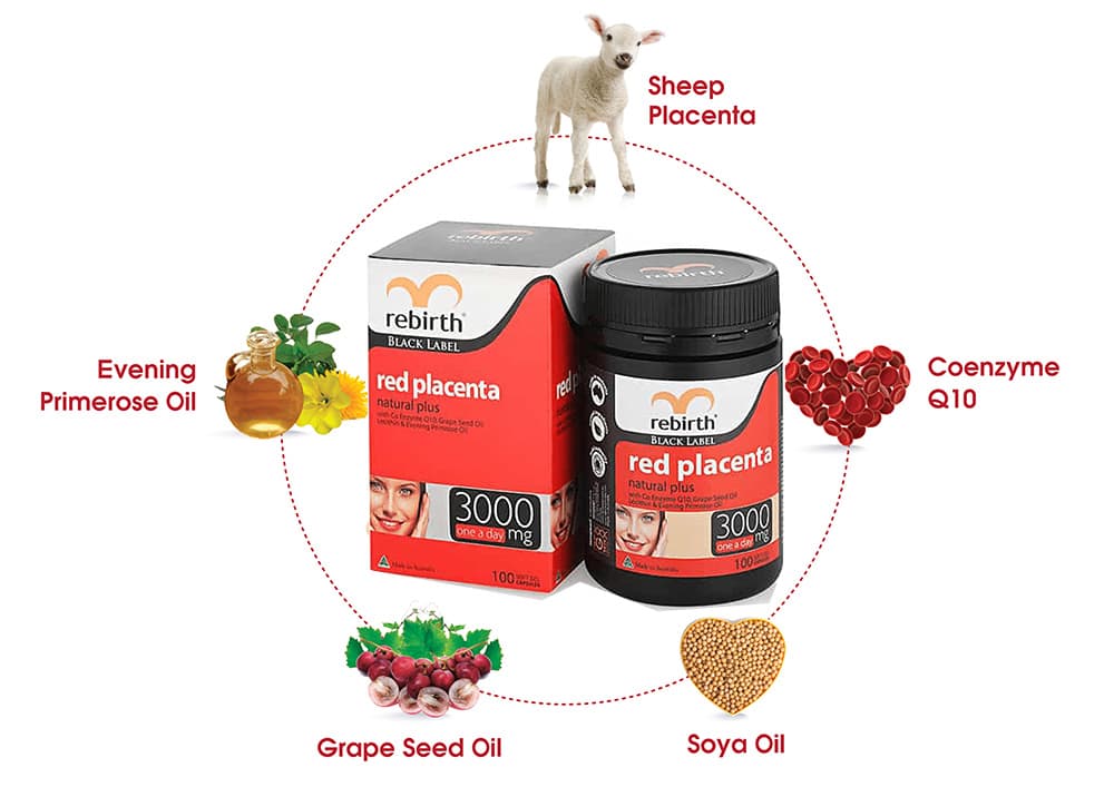 + Mỗi Viên uống nhau thai cừu đỏ Rebirth được tăng cường 3000mg chiết xuất nhau thai cừu tập trung giúp chống lại các dấu hiệu lão hóa. CoEnzyme Q10 giúp cho việc sản xuất năng lượng tế bào và duy trì sự trẻ hóa.