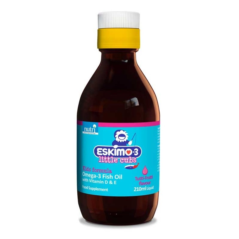 Eskimo-3 Kids Tutti Frutti dạng lỏng cung cấp các dưỡng chất quan trọng cho não bộ và sự phát triển của trẻ nhỏ. Ưu điểm lớn nhất của Vitamin Eskimo 3 Omega chính là thành phần hoàn toàn thiên nhiên, KHÔNG SỬ DỤNG PHƯƠNG PHÁP BIẾN ĐỔI HÓA HỌC để tăng cao hàm lượng DHA và EPA nhằm đánh lừa người dùng như một số sản phẩm kém chất lượng trên thị trường. Dầu cá dạng lỏng với các tính chất đặc biệt của tự nhiên omega-3, omega-6 và omega-9 từ cá và các loại dầu thực vật sẽ cung cấp đầy đủ các chất cho trẻ phát triển một cách toàn diện các chức năng. Vitamin Eskimo 3 Omega là lựa chọn dưỡng chất hoàn hảo cho bé yêu trong giai đoạn phát triển và hoàn thiện trí não (bé từ 1 tuổi), bé đang trong thời gian thi cử, học hành cần tập trung cao độ...